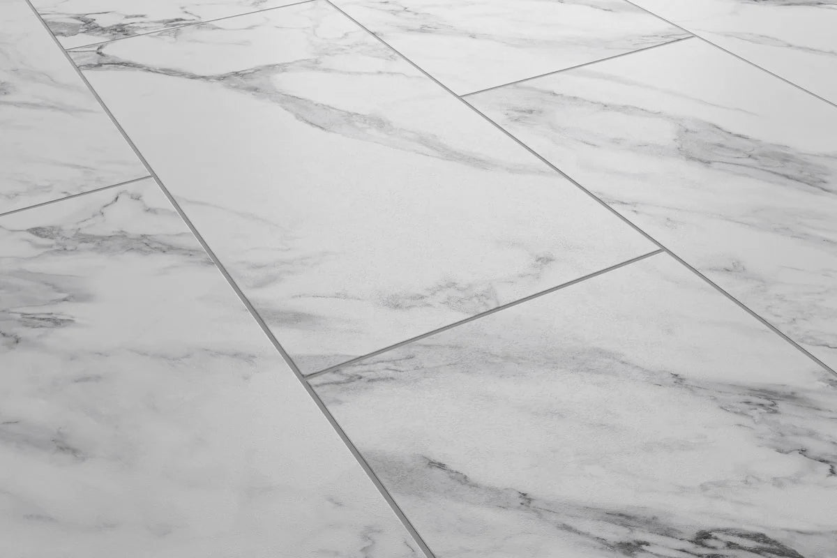 Audacity Rigid Core Pre-Grout Click Vinyl White Marble Tile Built-in Underlay