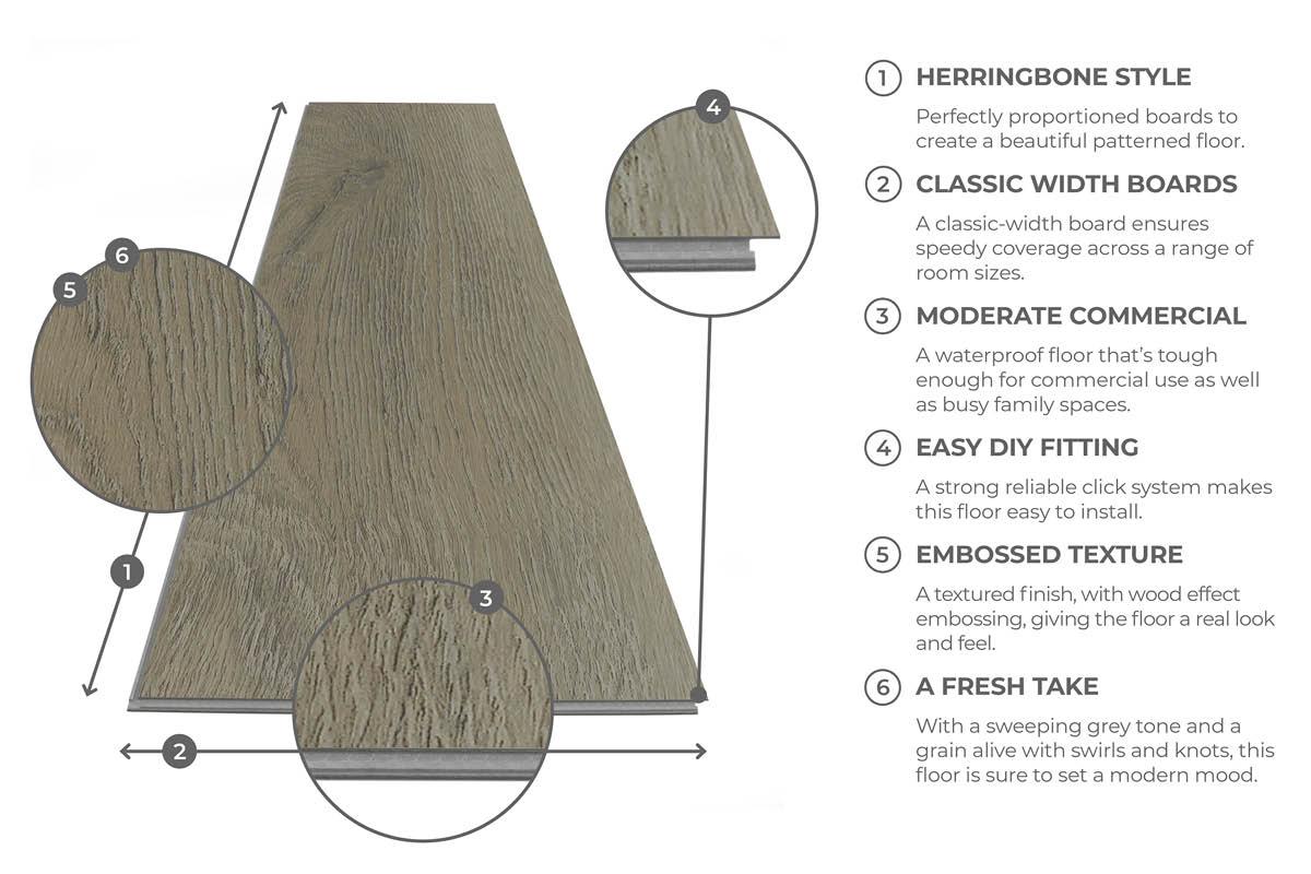 Spectra Luxury Rigid Core Click Vinyl Soft Pebble Grey Herringbone Built-in Underlay